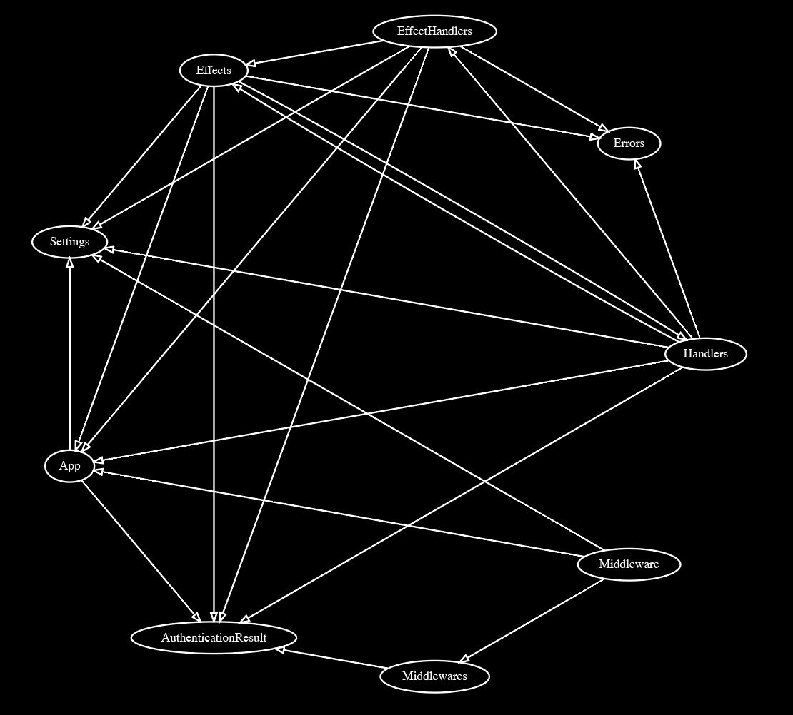 ならば、新たに静的解析を実装し、こういった問題を検出しようではないか。まずはモジュールの依存関係のグラフを可視化して見通しを立てたい──dot形式に変換し、graphvizで表示するだけの簡単な話だ。